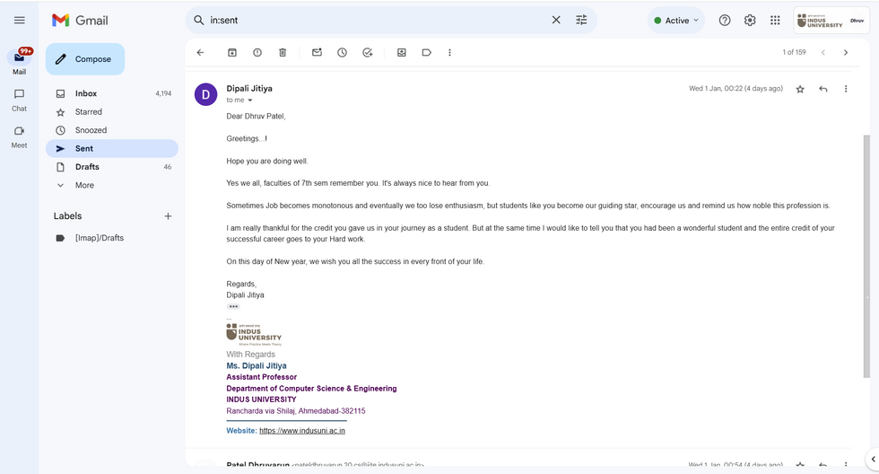 (The second one is from Dr. Ishbir Singh himself, the Director of Engineering at Indus University.)